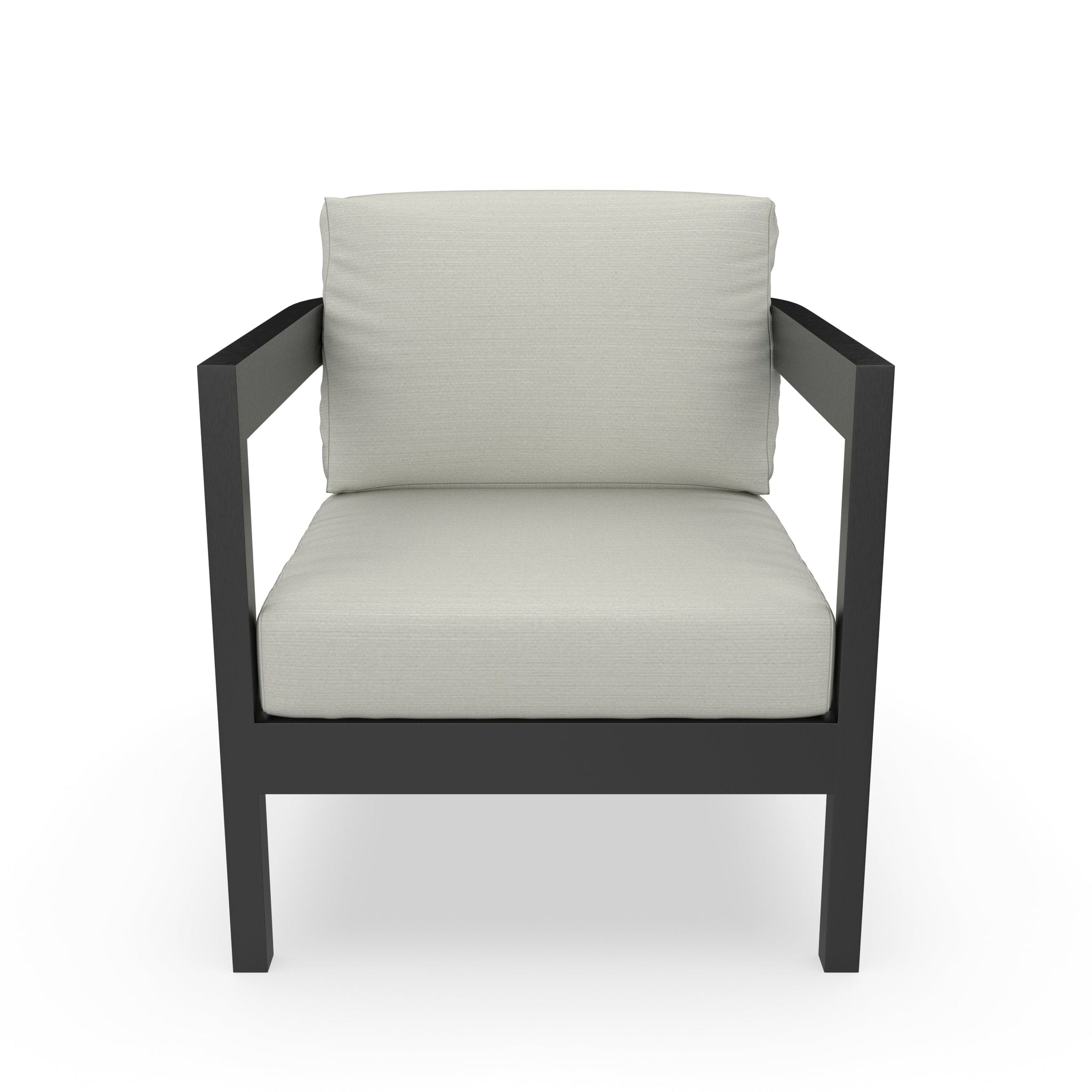 The Chesapeake Bay Collection redefines modern outdoor living with flowing lines and a sense of quiet balance. Softly curved backrests temper the strength of its dark powder-coated frame, creating a form that feels both architectural and inviting.